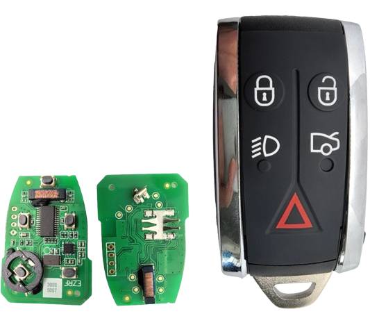 Афтърмаркет смарт ключ за Jaguar XF комплект. Комплектът включва: пластмасова кутийка с пет бутона за контрол на дистанционните функции + платка за дистанционното 433 MHz/FSK с транспондер (чип) PCF7953A/ID46 + ненарязан авариен ключ с профил на перото HU101 + батерия CR2032. Електрониката на ключа е еквивалент на такава с P/N: C2P17156 и е съвместима със следните модели автомобили: